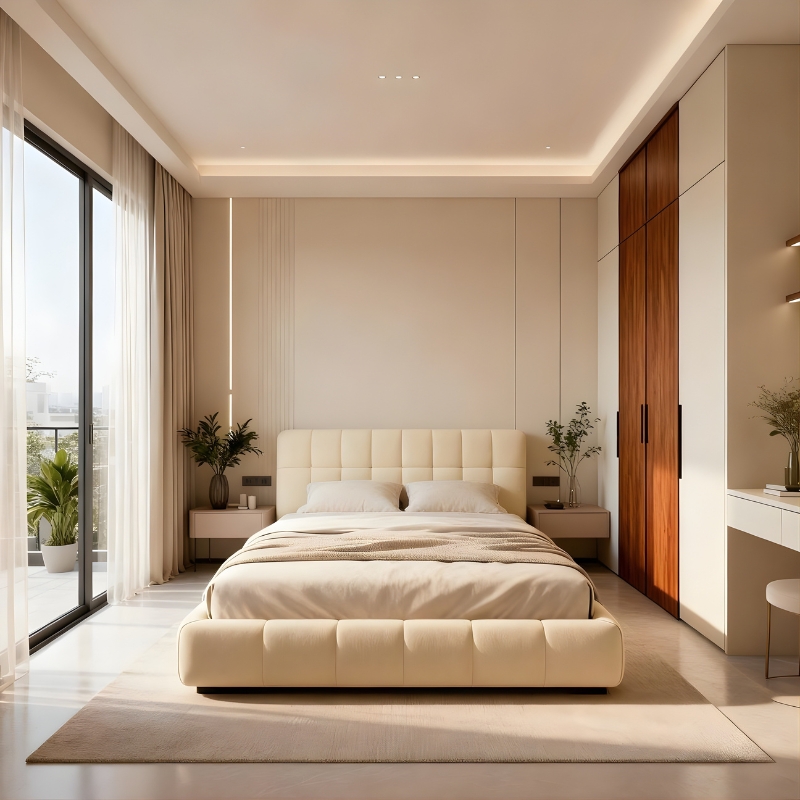 Trong các dự án thiết kế nội thất nhà cấp 4, FAM Interior thường ưu tiên xu hướng tối giản có kiểm soát, giữ không gian thông thoáng nhưng vẫn có điểm nhấn vật liệu và ánh sáng đủ để tạo chiều sâu cho căn phòng.