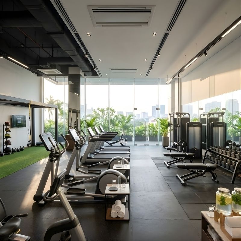 Phòng gym khách sạn 5 sao chuẩn quốc tế với tỷ lệ không gian rộng rãi, vật liệu chịu tải và hệ thống hoàn thiện đồng bộ.